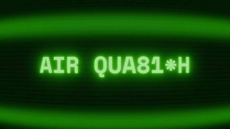 Old green CRT screen showing text AIR QUALITY appearing in random glitch and coding style Free Video