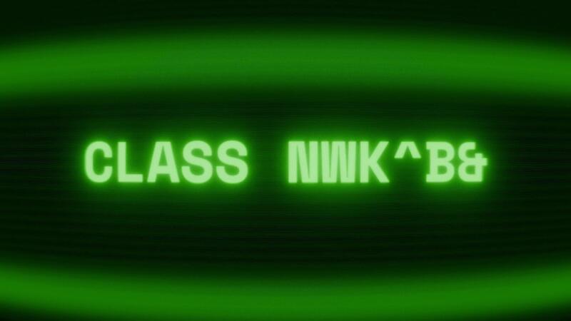 Old green CRT screen showing text CLASS NOTICE appearing in random glitch and coding style Free Video