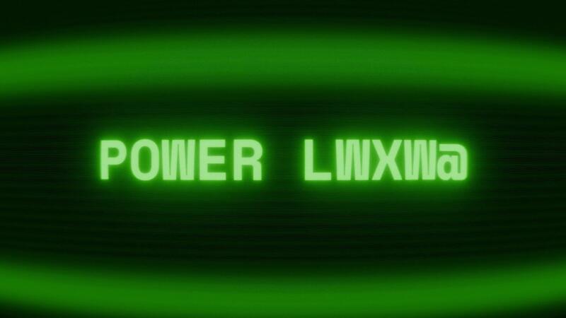 Old green CRT screen showing text POWER LOSS appearing in random glitch and coding style Pro Video