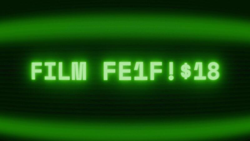 Old green CRT screen showing text FILM FESTIVAL appearing in random glitch and coding style Pro Video