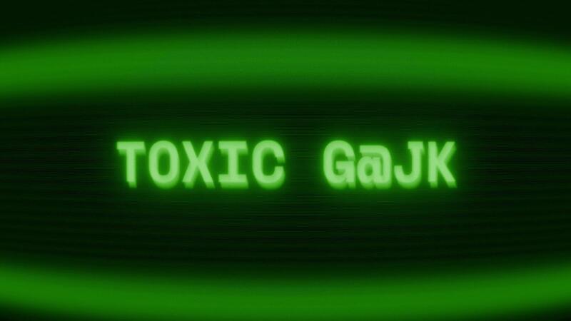 Old green CRT screen showing text TOXIC GAS appearing in random glitch and coding style Pro Video