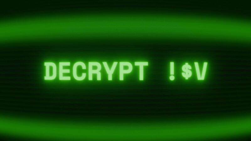 Old green CRT screen showing text DECRYPT NOW appearing in random glitch and coding style Free Video