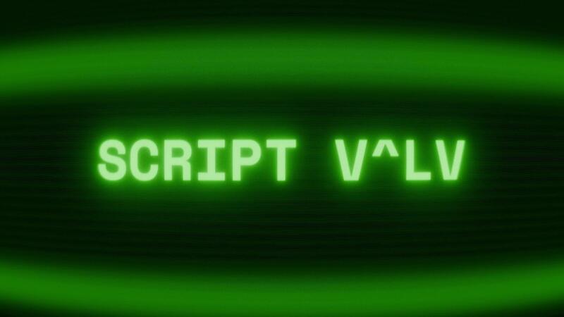 Old green CRT screen showing text SCRIPT READ appearing in random glitch and coding style Pro Video