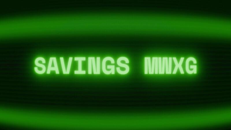 Old green CRT screen showing text SAVINGS PLAN appearing in random glitch and coding style Pro Video