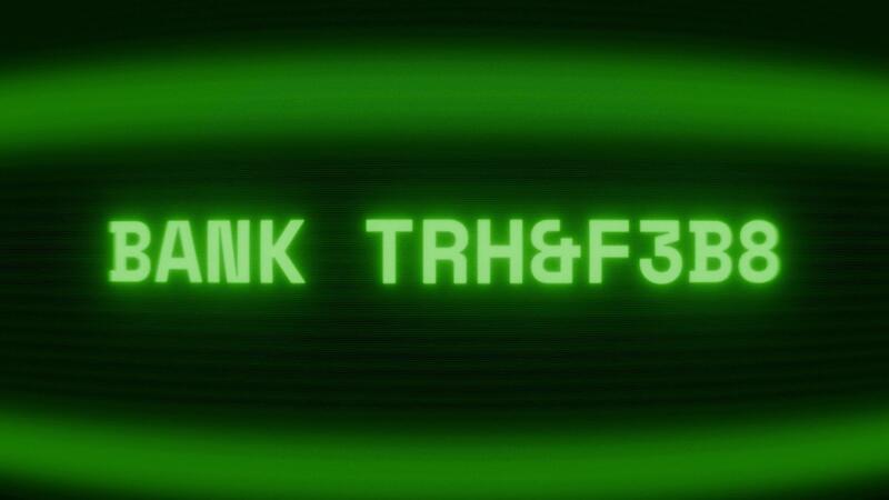 Old green CRT screen showing text BANK TRANSFER appearing in random glitch and coding style Free Video