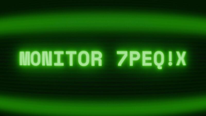 Old green CRT screen showing text MONITOR SCREEN appearing in random glitch and coding style Pro Video