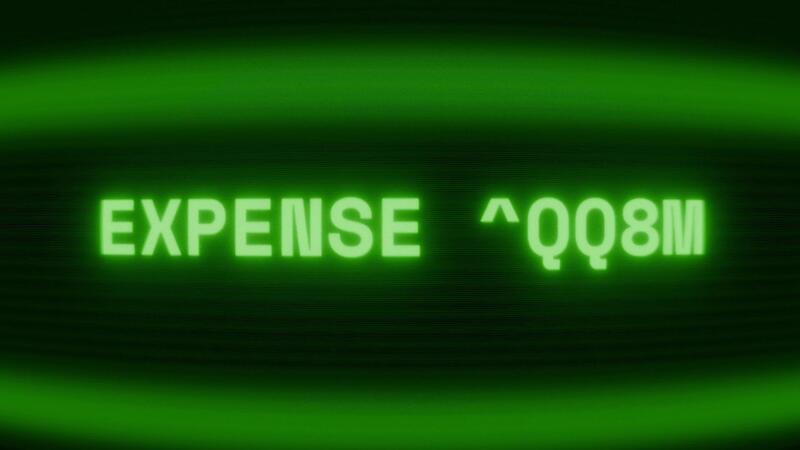 Old green CRT screen showing text EXPENSE TRACK appearing in random glitch and coding style Pro Video