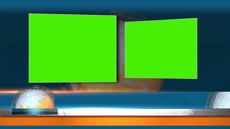 News broadcast studio background slideshow template with green screens for graphics and text overlays usage Free Video