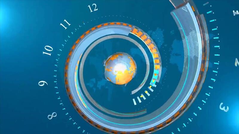 Broadcast newsroom background template featuring green screens for titles and graphics with intro animation Free Video