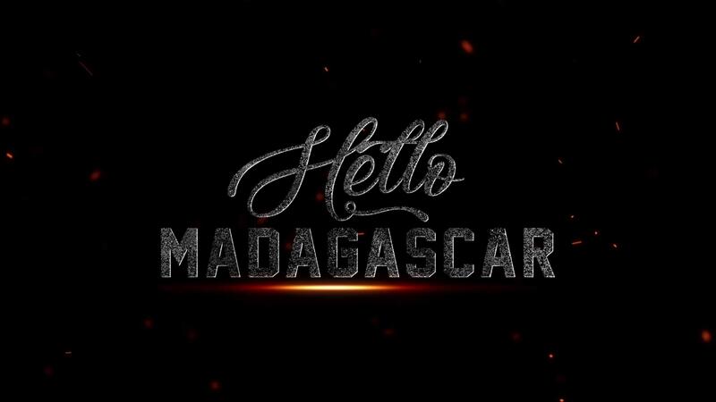 Cinematic intro title card design with dynamic textured 'Hello Madagascar' lettering, illuminated by an ethereal glow and sparking particles, ideal for captivating opens and presentations Pro Video