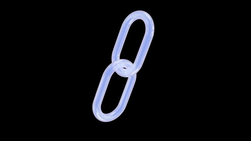Transparent Glass Chain Links Rotating on Black Background. Futuristic Translucent Chain Connection Loop Animation. 4K Pro Video