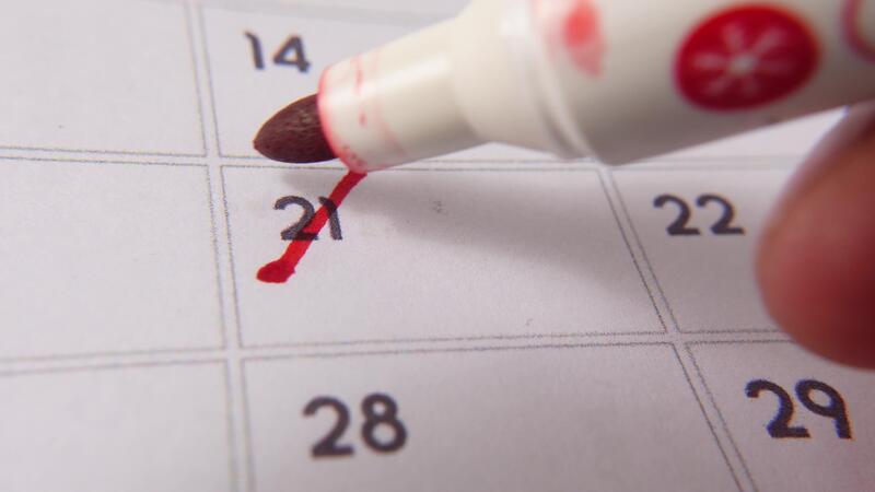 Highlighting date number 21 on a calendar, with a bold red cross mark emphasizing an important reminder or scheduled event. Pro Video