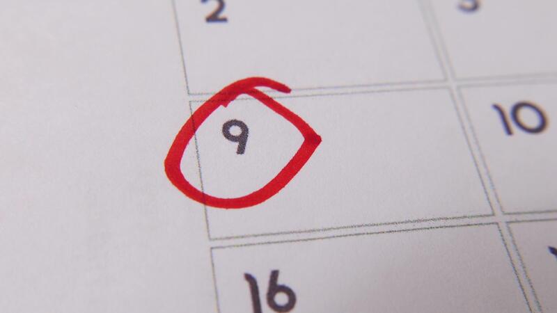 The 9th on the calendar is circled in red marker in a close-up macro shot on a white page, symbolizing an important day or reminder. Pro Video