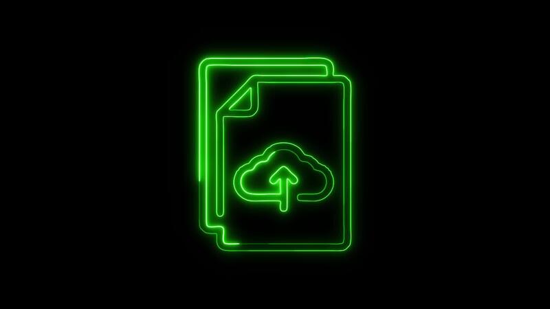 Cloud Upload Icon Animation with Glowing Lines on Black Background Pro Video