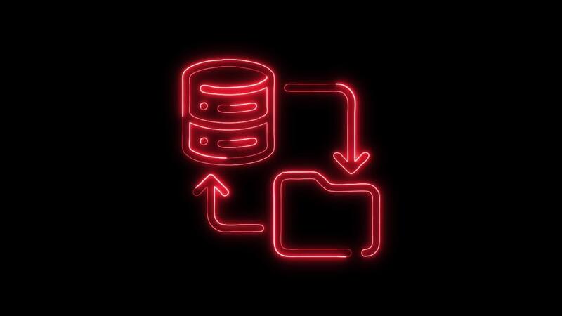 Data Backup Icon Animation with Glowing Lines on Black Background Pro Video