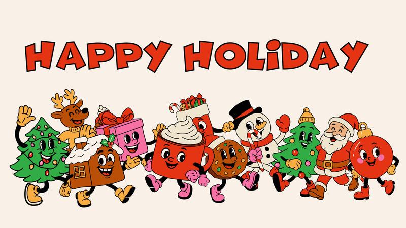 Happy Holidays Cartoon Art with Running Characters. Loop Animation. Alpha channel transparency Pro Video