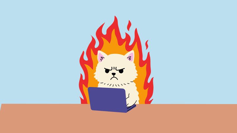 Surreal Cat and Laptop Art with Flaming Effect. Loop Animation. Alpha channel transparency Pro Video