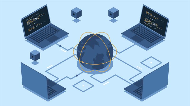Isometric laptop connected with globe animation. Global communication internet network. Storage and communication technology. Isometric technology. 4K animated in isometric style. Free Video