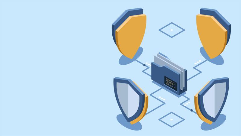 Isometric folder with shield animation. Data protection. Folder security. Safe documents and folder. Isometric technology. 4K animated in isometric style. Free Video