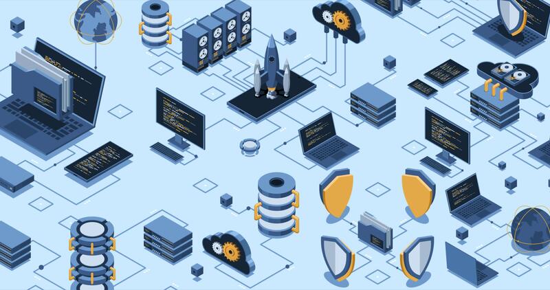 Isometric data network management animation. Cloud storage data and synchronization of devices. Networking, database, cloud storage. Isometric technology. 4K. Free Video