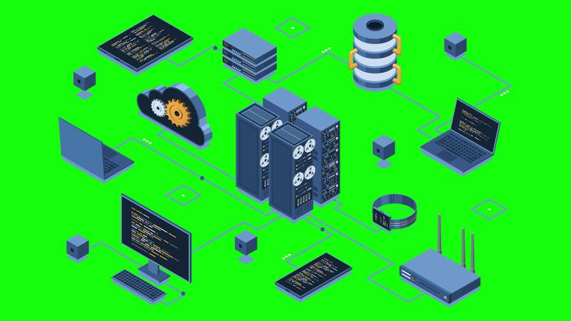Isometric cloud technology with server animation. Isometric server and hosting storage technology. Web hosting concept. Isometric technology. 4K animated Free Video