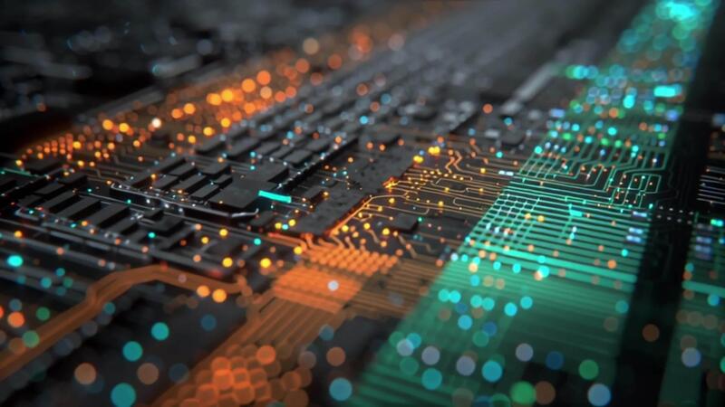 Abstract Technology Circuit Board Animation with Glowing Lights and Data Flowing Background Free Video