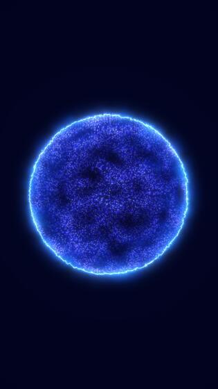 Abstract glowing blue sphere with particle texture and radiant edges floating on a dark background Free Video