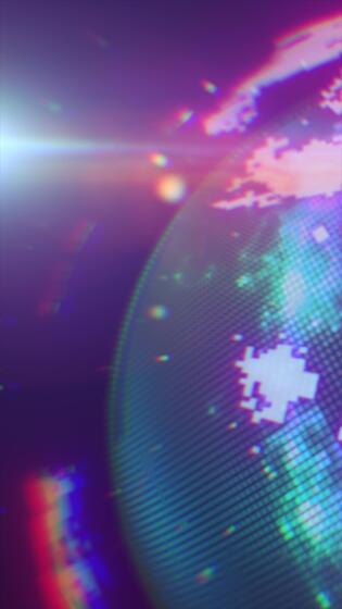 Abstract glowing digital globe with pixelated surface and light reflections, representing global technology Free Video