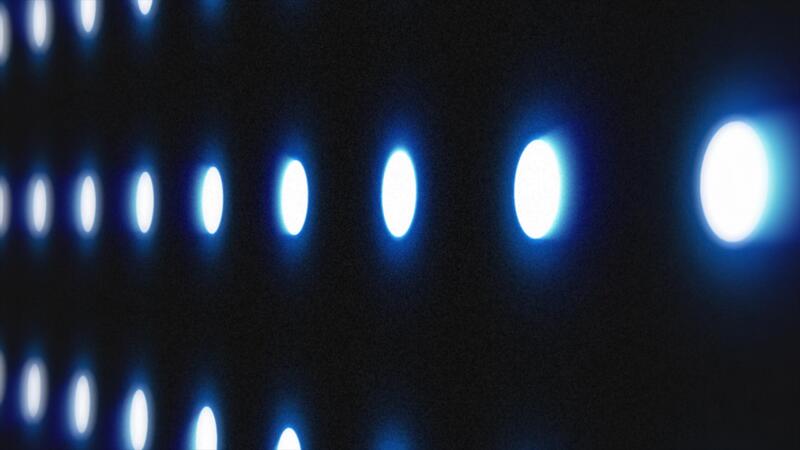 Blue illuminated circles in a grid pattern glowing over a dark surface Free Video