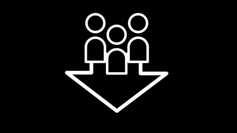 Three minimal white icons of people standing together represent teamwork, collaboration, and unity, emphasizing the collective effort and cooperation required for shared success. Free Video