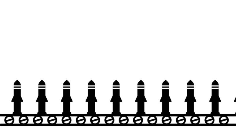 A detailed visual of rockets arranged in sequence represents production efficiency, innovation, and the systematic process of technological advancement Free Video