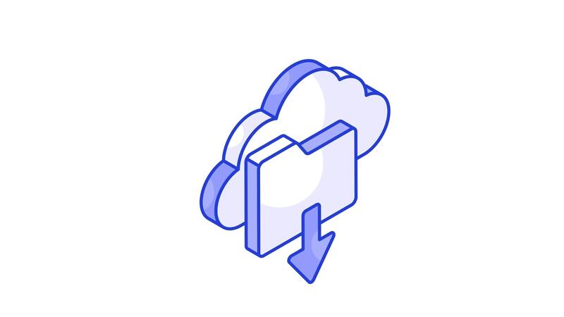 Cloud with file folder and down arrow, isometric animated icon of cloud download.. Pro Video