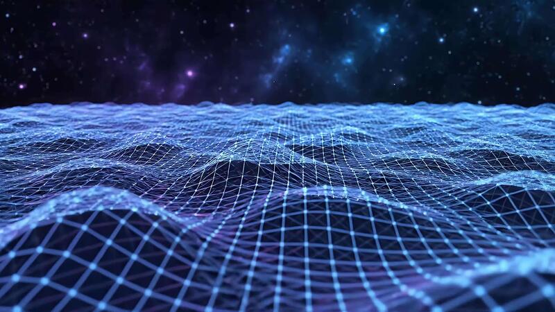 Abstract flowing digital grid landscape under a vibrant starry night sky, visualizing futuristic data networks, interconnected technology, and boundless cosmic cyberspace Pro Video