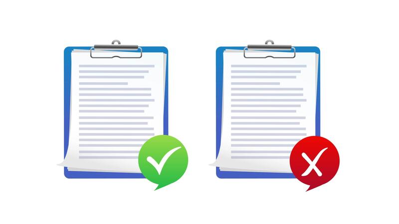 Clipboard with checklist and checkmarks, wrong and right, white and green screen Pro Video