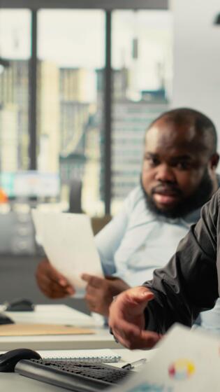 Vertical Coworkers group collaborate on report writing and data visualization, and analysis. The team focuses on performance objectives, management strategy and efficient report sharing. Camera B. Pro Video