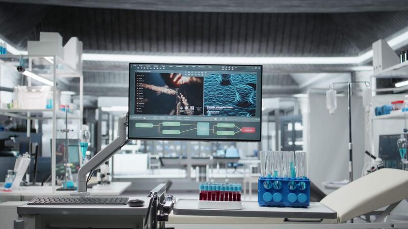 Clean empty science institute lab designed for experimentation and observation, symbolizing prevention, toxicology studies and biotechnology development focused on medical safety and innovation. Pro Video