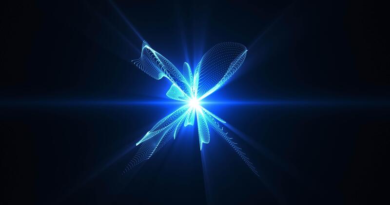 Magical animation of glowing particles. Particle trails. Abstract blue neon flame with sparkles that sparkle and swirl, 3D animation. Seamless looping 4K . Atomic science Pro Video