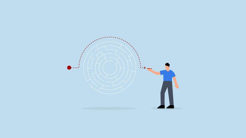 solution to bypass problem, entrepreneur mastermind create alternative path to navigate maze. Pro Video
