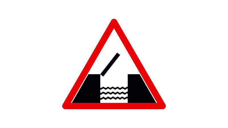 Drawbridge Warning Sign Animation. An animated loop with alpha channel on transparent background. It features a dynamic road warning sign depicting a drawbridge. Pro Video