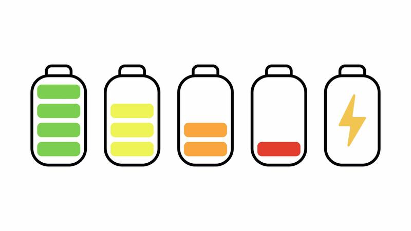 Battery Charge Level Animation. Looped animation of battery charge status with an alpha channel on a transparent background. Pro Video