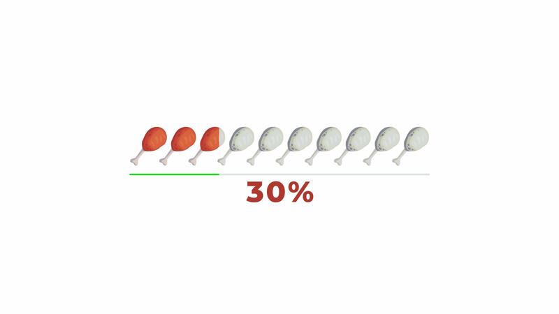 Animated Loading Bar with Chicken Drumstick. This is a animation with an alpha channel on a transparent background. The animation visually represents a loading process. Pro Video