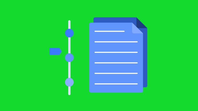 Change history stack animation featuring layered documents with a timeline bar beside them. Great for illustrating file history, activity tracking, and project version management. Pro Video