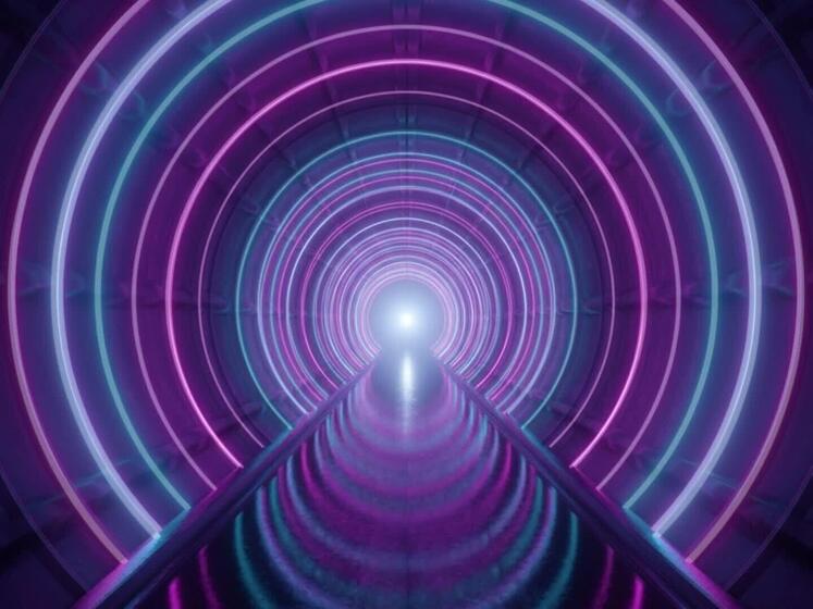 Futuristic neon tunnel loop animation with glowing lights and cyberpunk vibe. Perfect for VJ loops, motion graphics, music visuals, and digital backgrounds. Free Video