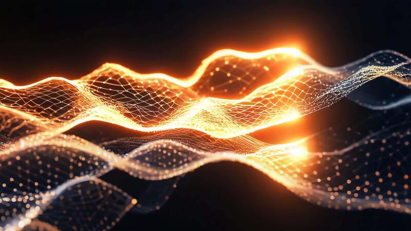 Abstract rendering of a network with connected dots and luminous orange light source on the left Free Video