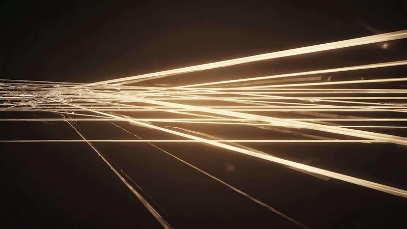Illuminated horizontal lines stretching into distance on a dark surface creating a perspective view Free Video