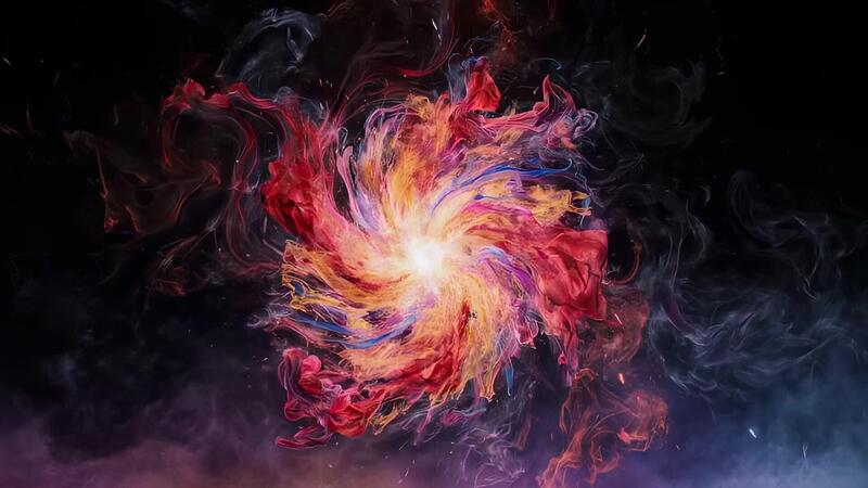 Abstract Particle Explosion Forming Swirling patterns on Black background Free Video