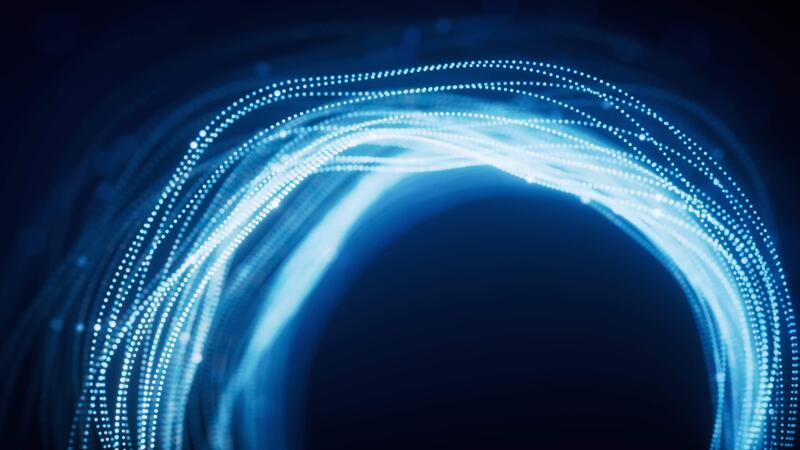 Flowing curve lines and particles with ring shape, 3d rendering Pro Video