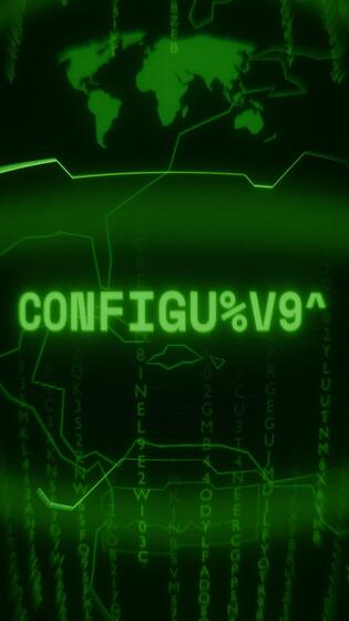 Old green Vertical Retro CRT screen showing text CONFIGURING appearing in random glitch and Haking style Free Video