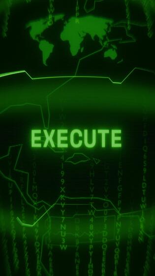 Old green Vertical Retro CRT screen showing text EXECUTE appearing in random glitch and Haking style Free Video