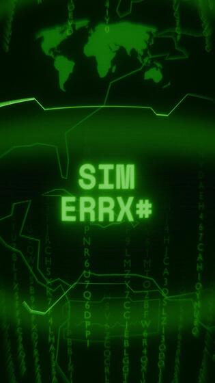 Old green Vertical Retro CRT screen showing text SIM ERROR appearing in random glitch and Haking style Free Video